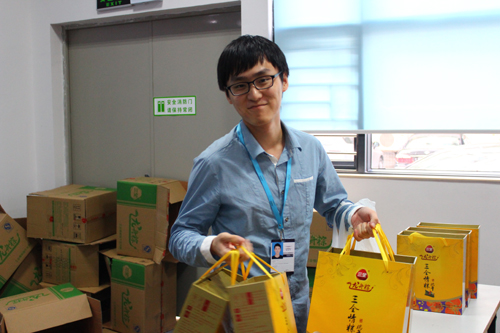 菖蒲高懸飲雄黃,竹葉紅豆粽子香,端午臨近,濃濃的節(jié)日氣氛彌漫華訊方舟,6月6日下午,由公司行政部精心準(zhǔn)備的一箱箱“三全龍舟粽”抵達(dá)公司階梯會(huì)議廳,各部們派代表領(lǐng)取集團(tuán)送給員工們的節(jié)日禮物,讓他們感受到家的溫暖,一箱箱龍舟粽,一張張開懷笑臉,粽香情更濃。
